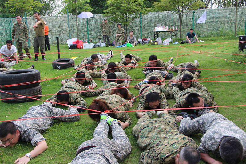 在下午的拓展活動環(huán)節(jié),正值烈日當空,天氣炎熱,但是學員們?nèi)匀荒軌驁猿衷賵猿郑朔邷?、疲憊、傷痛,一路闖關(guān)過陣,攜手共進,圓滿完成了團隊作戰(zhàn)、過電網(wǎng)、動力圈三個拓展項目培訓,充分展現(xiàn)了綠港人堅韌不拔、團結(jié)協(xié)作、不言放棄的良好精神品質(zhì)。